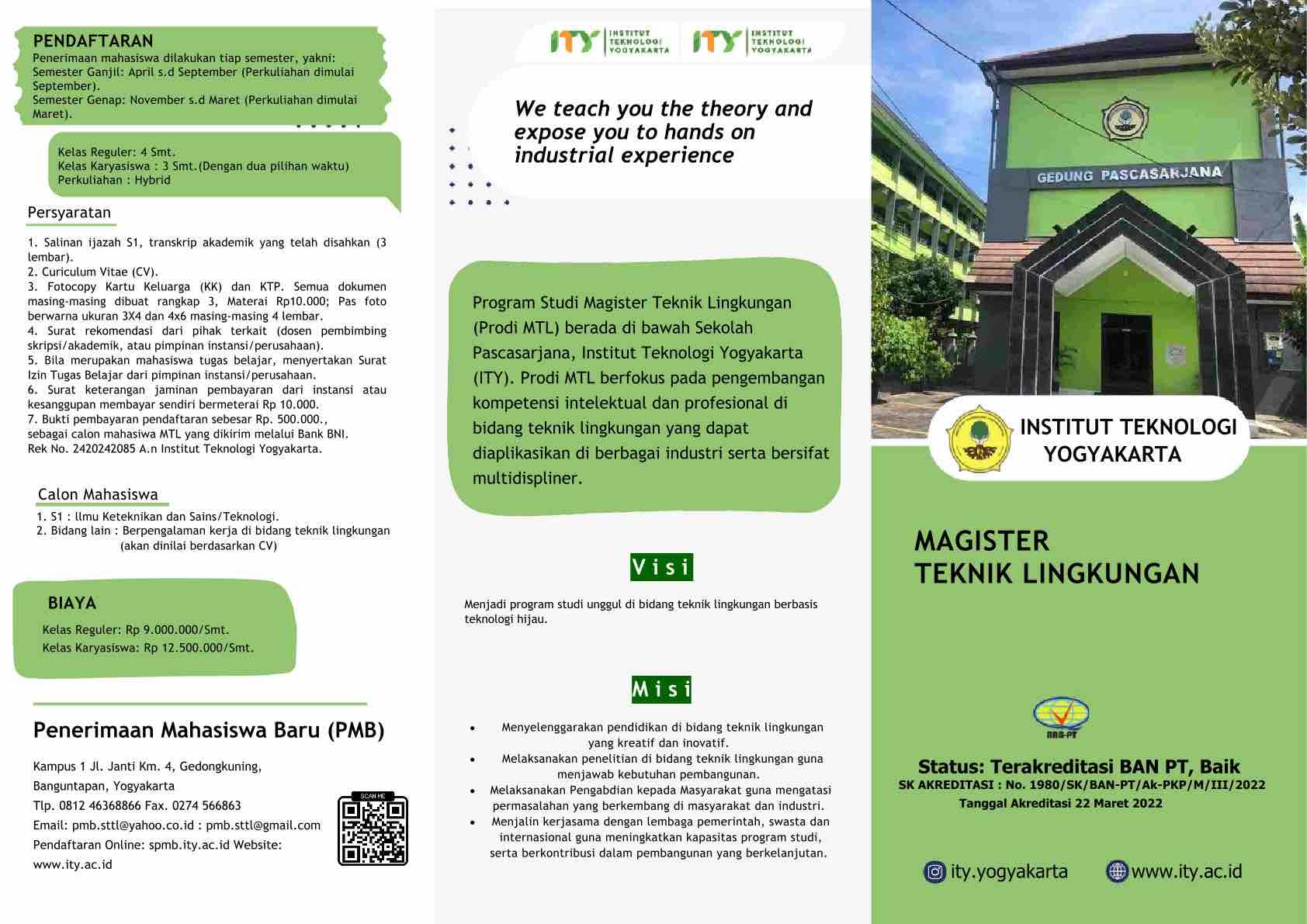 Program Studi Magister Teknik Lingkungan (Prodi MTL) berada di bawah Sekolah Pascasarjana, Institut Teknologi Yogyakarta (ITY). Prodi MTL berfokus pada pengembangan kompetensi intelektual dan profesional di bidang teknik lingkungan yang dapat diaplikasikan di berbagai industri serta bersifat multidispliner.