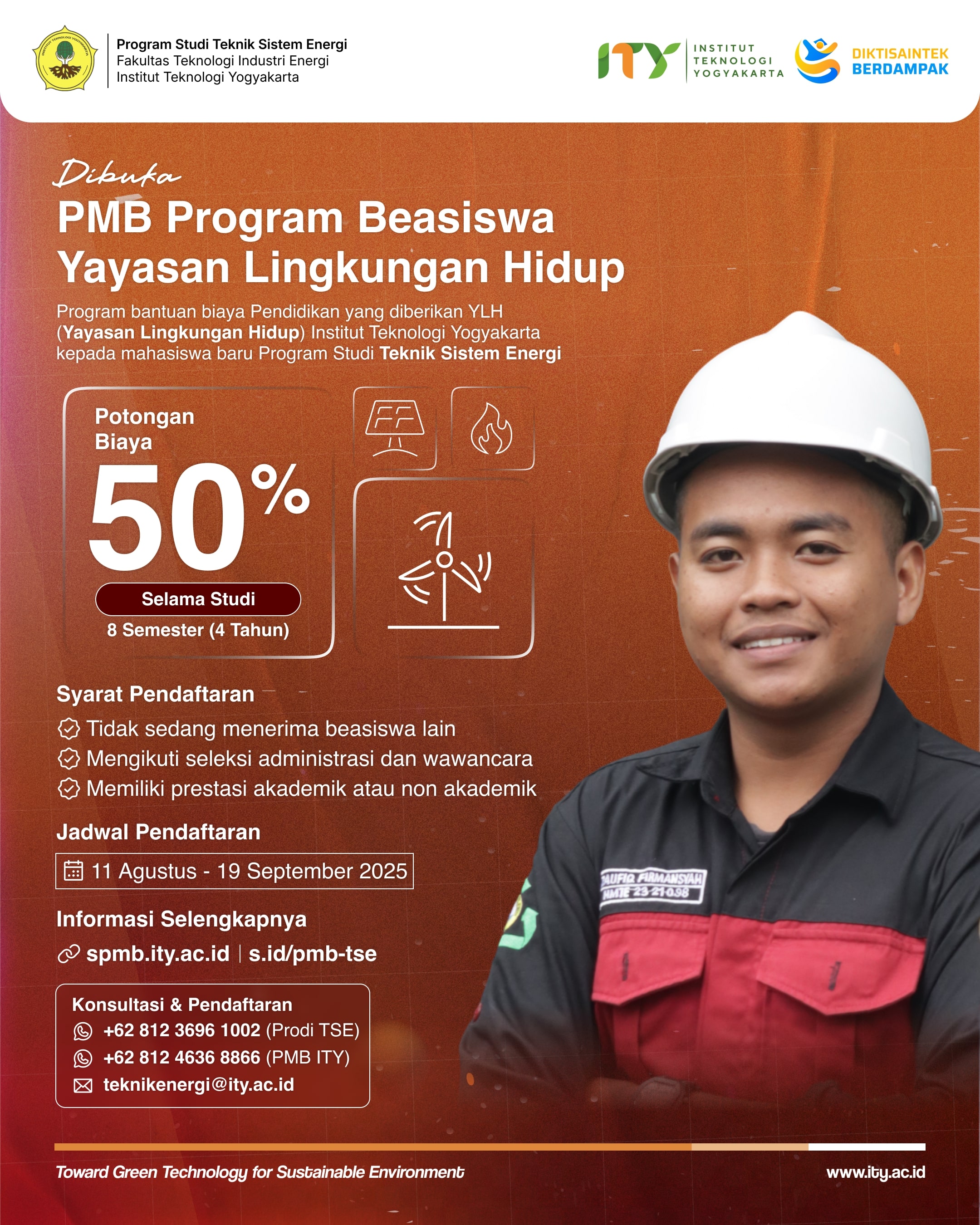 Penerimaan Mahasiswa Baru Beasiswa Yayasan Lingkungan Hidup Program Studi Teknik Sistem Energi ITY 2025